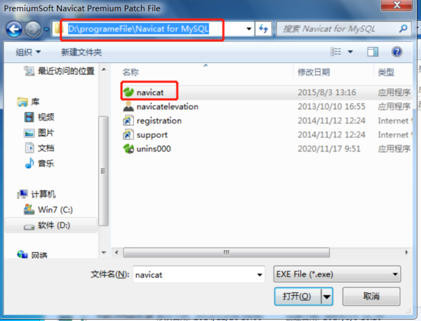 打开之后,游览到安装Navicat for MySQL的目录,完成即可。