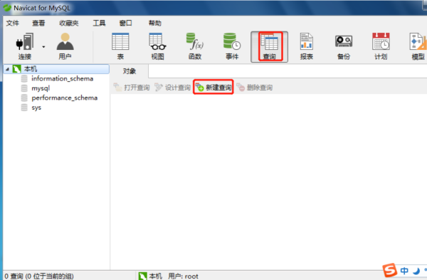 连接好之后,点击查询,再点击新建查询,就可以写SQL了。