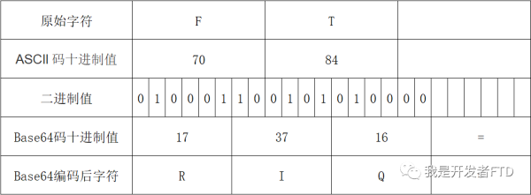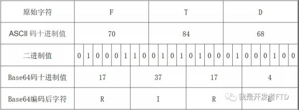 因此字符串 “FTD” 经过Base64 编码之后就变为:RIRE 。