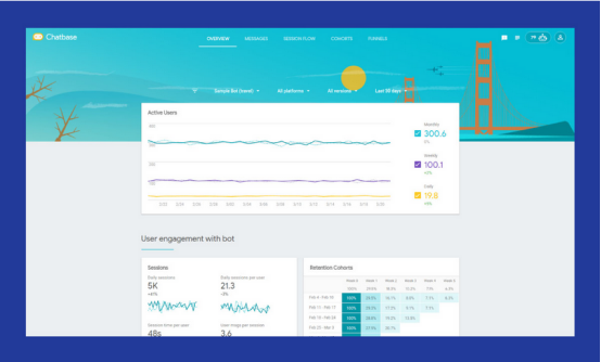 在分析功能方面,Chatbase具有组织可以想象到的所有的功能:会话流、创建漏斗、未处理消息的分组、聊天记录等等。仪表板的用户界面(UI)与Google Analytics非常相似。因此, Google Analytics用户会发现它更容易使用。