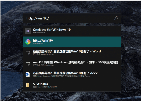 用过Mac的人,一定对里面的Spotlight印象深刻,这是苹果的一体式搜索栏。除了可以实现基本的文件搜索外,它还加入了天气预报、计算器、单位换算、汇率换算、附近餐馆等生活搜索功能。有消息称,微软打算将其御用外挂PowerToys的部分功能内置到系统中,这其中就包括那个和Spotlight长得很像的搜索面板。与Spotlight一样,PowerToys搜索栏也能通过热键呼出(Alt+空格),而且界面也要比现版的Windows搜索更直观。目前PowerToys同样也是定位在文件搜索层面,后期如果能和Cortana联动,就能实现类似于Spotlight的综合搜索效果。