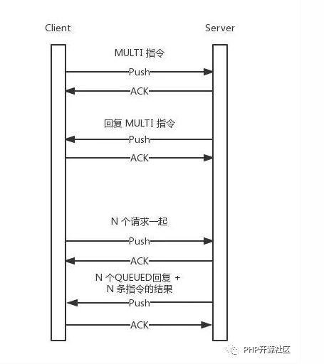 Redis 中有至少这样两个方法能合并多个指令到一个 request 中,一个是 MULTI/EXEC ,一个是 script。前者本来是构建 Redis 事务的方法,但确实可以合并多个指令为一个 request,它到通讯过程如下。至于 script,最好利用缓存脚本的 sha1 hash key 来调起脚本,这样通讯量更小。