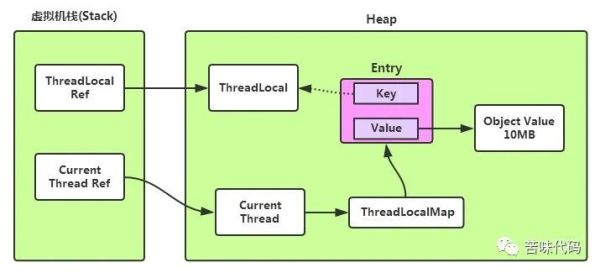 }当localCache的值被重置之后cacheInstance被ThreadLocalMap中的value引用,无法被GC,但是其key对ThreadLocal实例的引用是一个弱引用,本来ThreadLocal的实例被localCache和ThreadLocalMap的key同时引用,但是当localCache的引用被重置之后,则ThreadLocal的实例只有ThreadLocalMap的key这样一个弱引用了,此时这个实例在GC的时候能够被清理。