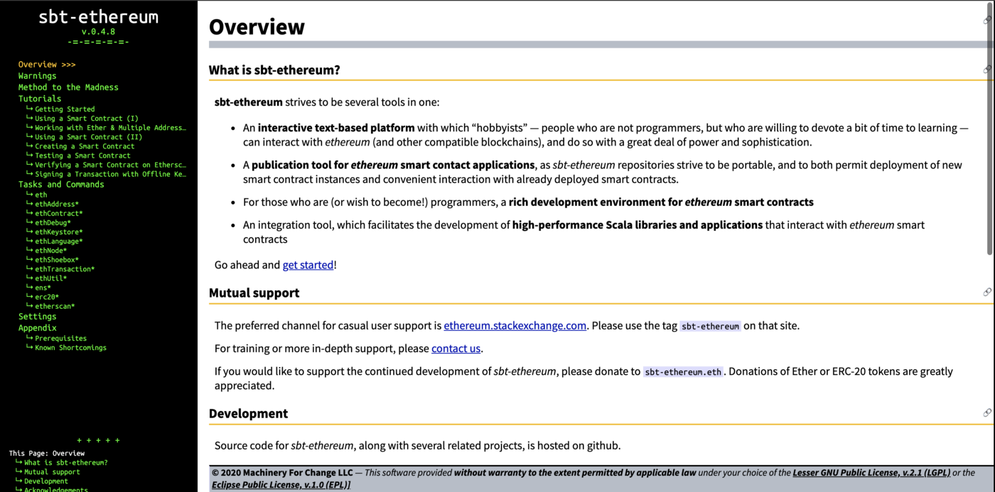 这是我玩过的一个很有趣的项目,SBT的特色是几乎完全从命令行或使用 Scala 与智能合约交互。我的 Scala 经验几乎为零,因此没有足够的背景知识来评估这个平台。如果你了解 Scala 并想要踏入以太坊世界,这款工具可能真的是很酷的选项。