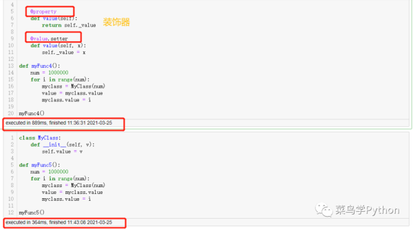 在类中,尽量不要去使用装饰器,描述符等操作来包装程序,这会给程序的运行带来负担,所以如果没有必要的话,就不要去这样包装程序。