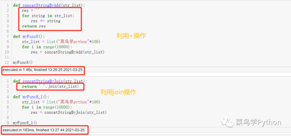 当字符串str1和str2操作使用“+”号操作时,Python解释器将申请内存空间,将数据str1和str2分别复制到新的内存空间中去,所以当进行N次的字符串”+“操作时,将会生成N-1个中间的结果,并且每个中间结果都会复制到新的内存空间中。
