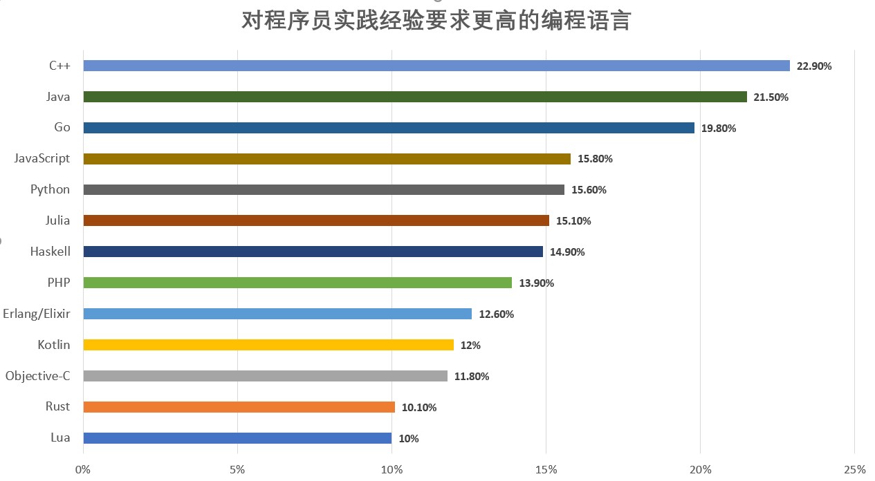 发现二:对程序员实践经验要求最高的是 C++