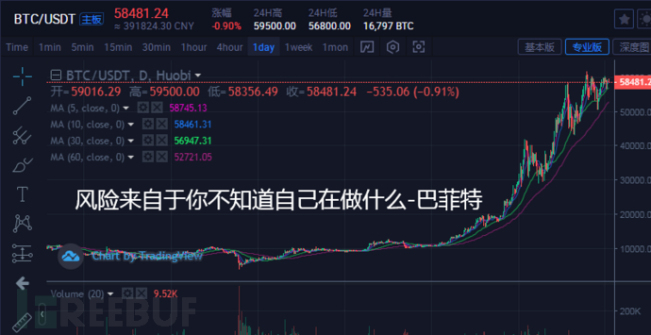 据消息成都某区块链安全公司的CMO高某,挪用被经侦查获的3个亿的数字资产开杠杆做空比特币想趁机捞钱。结果比特币一路高歌屡破新高,突破6万美元。