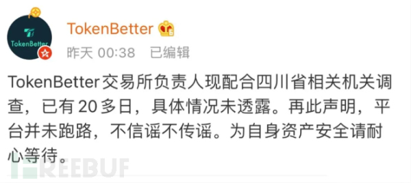 不知道大家还记不记得曾经的Tokenbetter交易所(大T网)。确实TokenBetter以涉及传销被经侦调查,主要负责人熊兵兵等也被刑事拘留。消息称爆仓的这3个亿的数字资产里部分属涉案的TokenBetter。