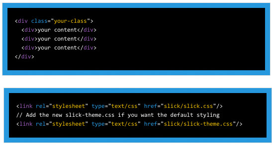 例如,您构建了一个jQuery插件,那么就可以参照如下SlickJS的文档,展示如何构造HTML,在何处放置CSS和JavaScript,如何初始化jQuery 的最基础插件,以及在完成各种元素添加后,如何显示完整的最终标记。