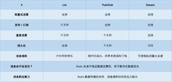 到这里,就不得不把 Redis 与专业的队列中间件做对比了。