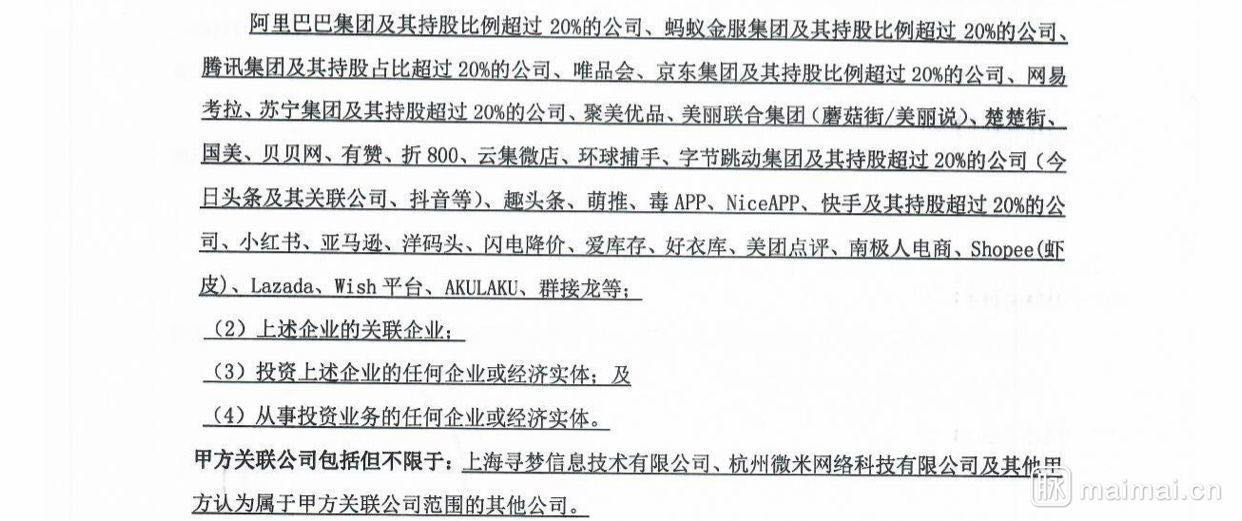 以下为某互联网企业去年的竞业协议,其竞对公司包括阿里巴巴、腾讯、唯品会、京东、网易考拉、苏宁、聚美优品等三十余家头部互联网企业。当然,如此严格的竞业协议也不只这一家。