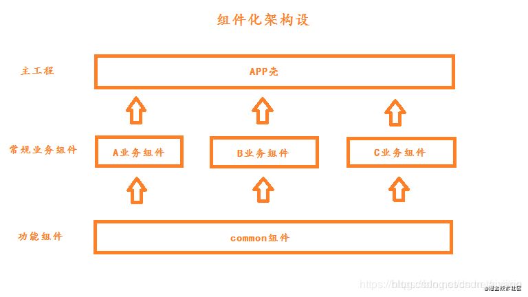 组件层: 基础层往上是组件层,组件层就包含就是根据我们应用划分的业务组件,例如登录模块,消息模块等。