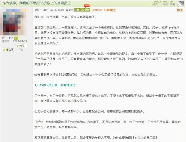 还有同为管理层的网友出来现身说法,认为员工的年龄不成问题,重要的是把手头的工作做好。