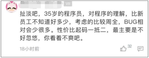 还有网友以专业人士的身份反驳了楼主的说法,表示 35 岁以上的程序员对工作的理解要比年轻人好得多,不会制造那么多 Bug。