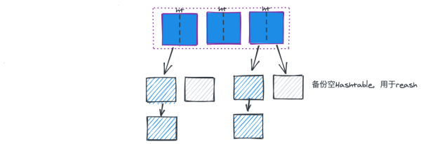Redis 中的字典类型大家不陌生,也许其他语言都有这种结构(python,Java,Go), hash 的扩容 rehash 过程和 Go 里面的设计颇有类似,也就是维护了两个 hash 结构。