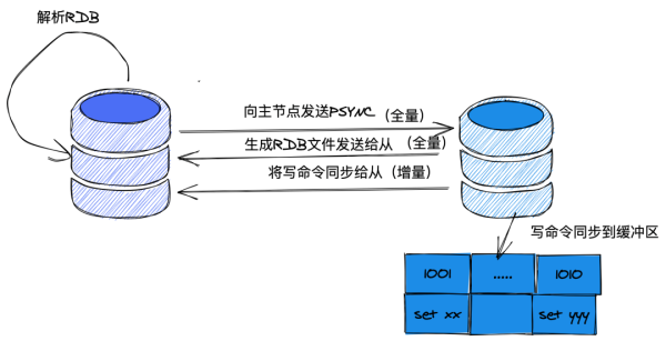 从库拿到数据后,要把数据保存到库里。这个时候就会在本地完成数据的加载,会用到 RDB 。