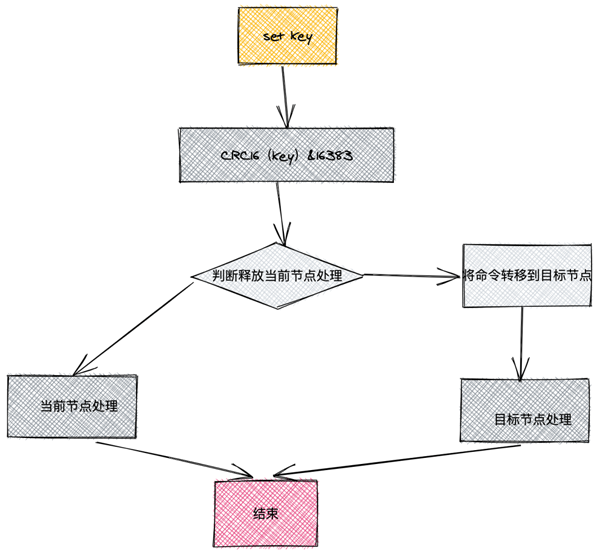当然如果在节点 2 执行一条命令时,假设通过 CRC 计算后得到的值为 567,则其应该由节点 1 执行,此时命令会进行转向操作,将要执行的命令流转到节点 1 上去执行。