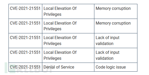 该漏洞由安全企业Sentinel Labs披露,该漏洞实际上是五个连续漏洞,皆位于戴尔驱动程序DBUtil(dbutil_2_3.sys)之中。戴尔将这五个漏洞统一追踪为编号CVE-2021-21551,归属于访问管控不足漏洞。