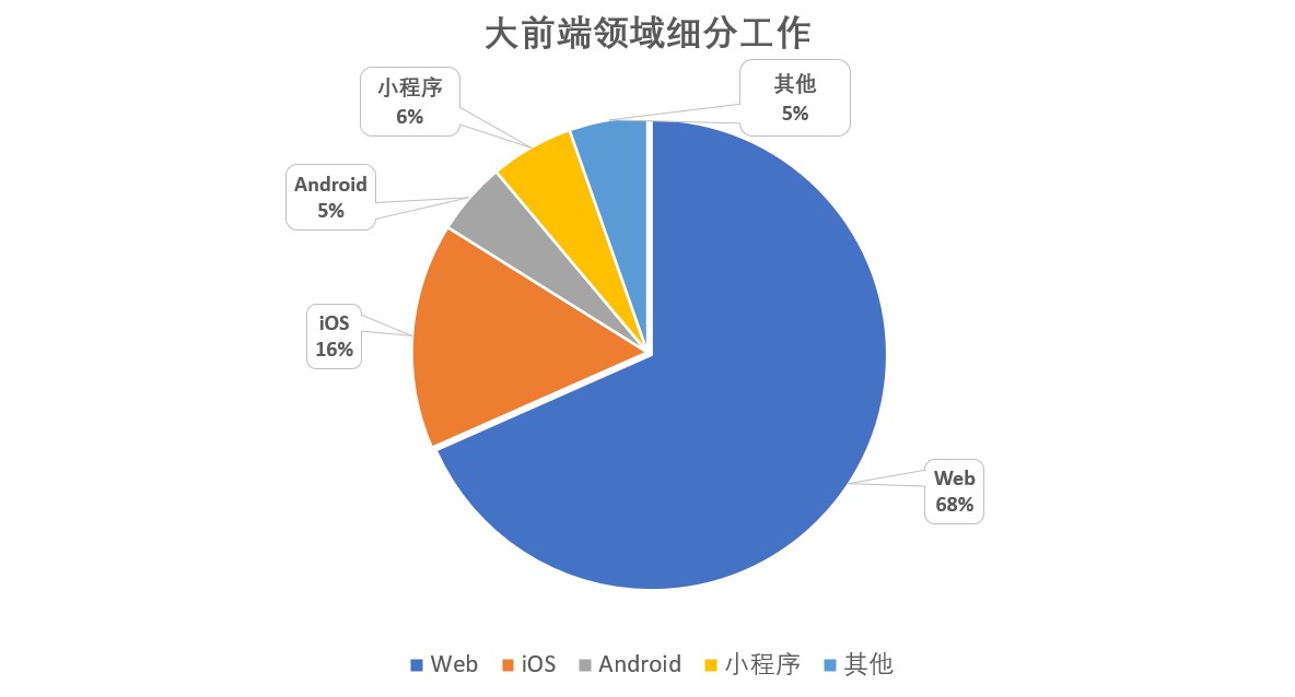 基于投票数据,我们发现 Web 开发得票率为 68%,由此可见它依然是大前端领域的主流。iOS 开发得票率为 16%,排名第二,而 Android 开发则以 5% 的得票率排名第四。同时,我们注意到,小程序开发以 6% 的得票率超过 Android 开发的 5%。