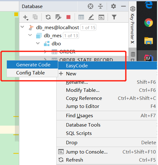先用database连接数据库,在对应表上直接右键执行EasyCode即可生成相应Java代码,真的很方便。