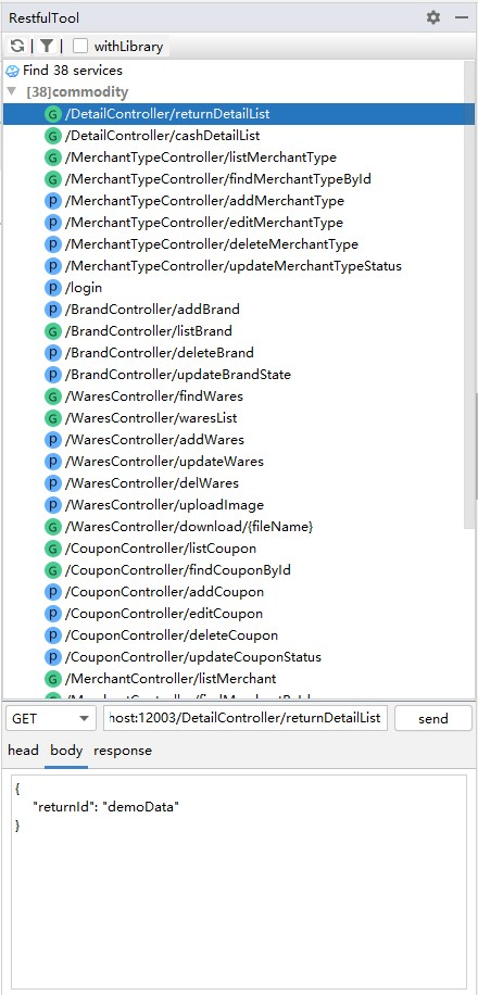 IDEA右侧会出现一栏RestServices,这里有整个项目的http请求,还会显示每个请求的入参、出参JSON数据,可以进行简单的模拟请求。
