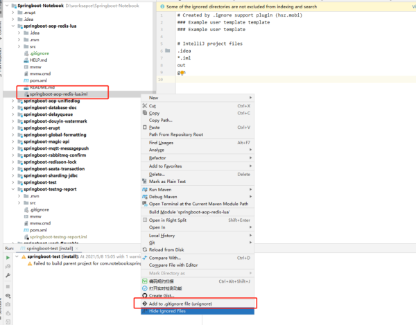 也可以添加指定文件到.gitignore中,被忽略的文件将变成灰色。