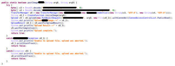 许多开发者也知道在应用中存储云服务秘钥是不安全的。研究人员分析多个APP发现,许多开发者尝试通过一些方法来进行补救,但是并没有修复密钥存储的问题。比如,Jadx应用用base64编码来隐藏密钥,但是base64解码非常容易,此外甚至不需要解码,只需要复制base64编码的秘钥就可以访问对应的内容。