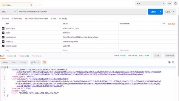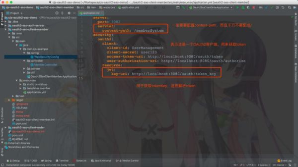 server:   port: 8082   servlet:     context-path: /memberSystem security:   oauth2:     client:       client-id: UserManagement       client-secret: user123       access-token-uri: http://localhost:8080/oauth/token       user-authorization-uri: http://localhost:8080/oauth/authorize     resource:       jwt:         key-uri: http://localhost:8080/oauth/token_key
