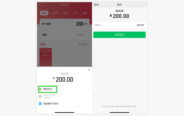 QQ红包可以使用微信支付了,在手机QQ给好友发送红包时,可以看到新增了微信支付的选项,选择使用后会跳转微信进行支付。