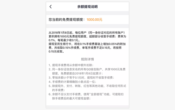 另外未使用过QQ提现的小伙伴,还可以享受1000元的余额免费提现额度,具体的介绍可以看看说明。