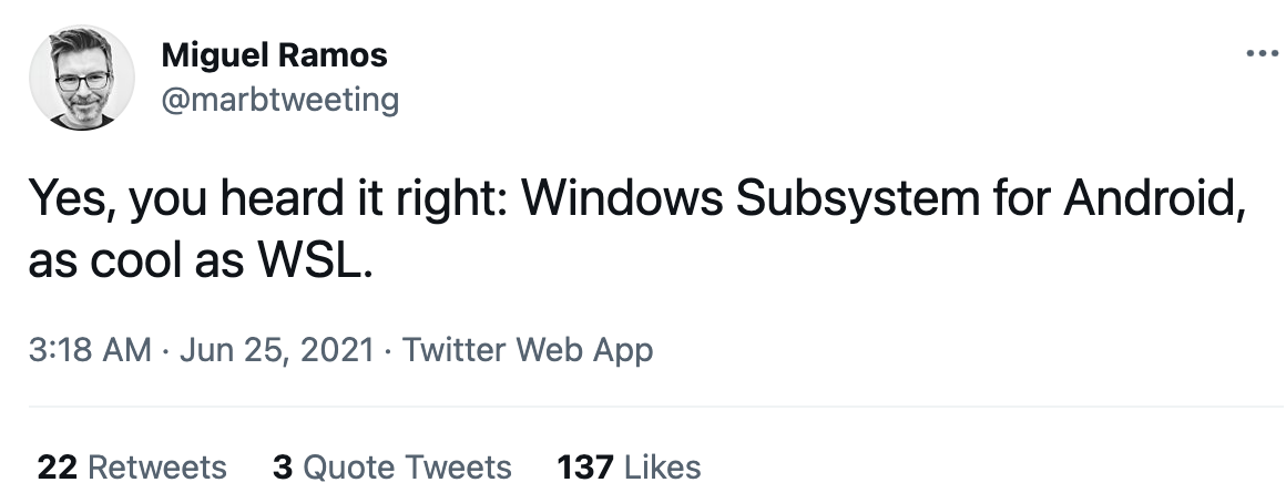 微软 WSL 项目负责人 Miguel Ramos 在推特上称新功能“和 WSL 一样酷”。
