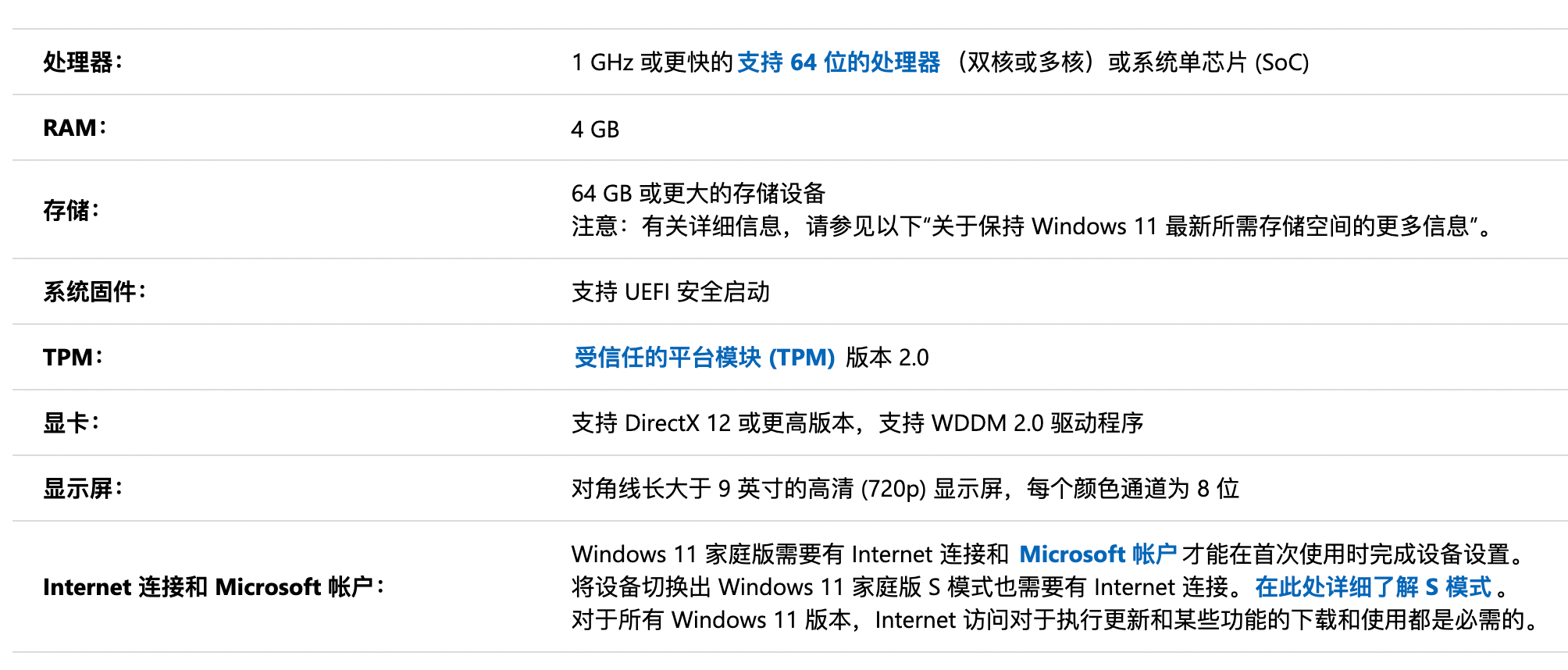 附上 Windows 11 对设备的硬件要求/最低配置: