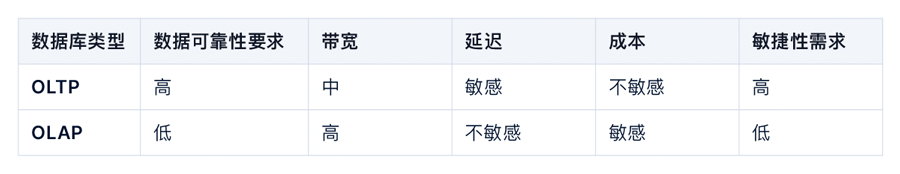 图 3. OLTP 和 OLAP 对存储系统的不同要求