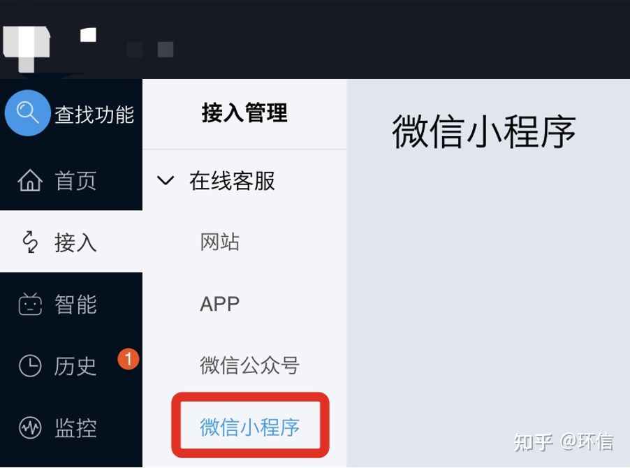 注册系统后台https://kefu.easemob.com/mo/register,在管理员模式菜单接入-微信小程序找到小程序接入页