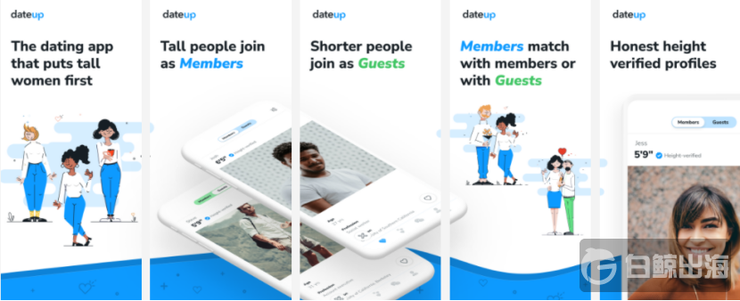 Dateup 是一款 2021 年 6 月才上线的、专为高个子女生打造的约会交友 App,目前仅面向美国市场开放。