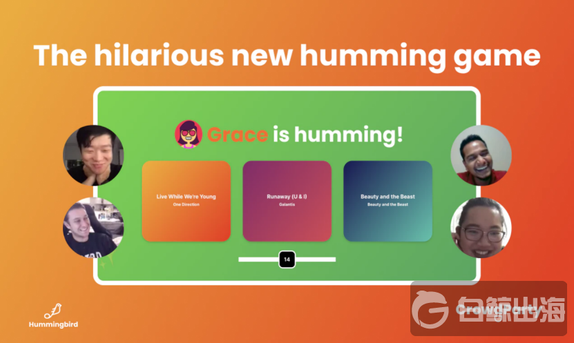 目前 CrowdParty 提供的功能包括书友聚会、谁是下一个百万富翁、两真一假、真心话、字谜、Trivia Night等。而且值得注意的是,CrowdParty 最近新上线的 Hummingbird 功能,在 YouTube 等社交媒体上引起了一阵狂潮。Hummingbird 的玩法也很简单即一名玩家根据系统提示歌词哼出曲子,但不可以说出歌词或者歌名。笔者和同事观看了其他用户的体验视频都忍不住笑出声来。