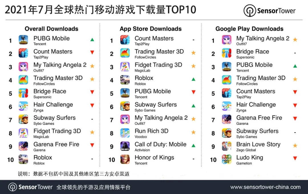 原标题:2021年7月全球热门移动游戏下载量TOP10