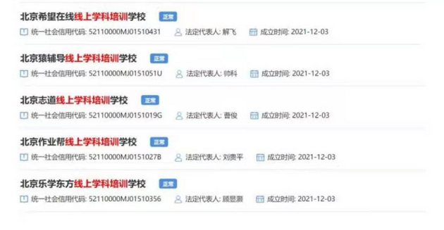 《21世纪经济报道》记者获恶,据中国社会组织政务服务平台,北京市已审批5家中小学学科培训非营利机构,分别为北京希望在线线上学科培训学校、北京猿辅导线上学科培训学校、北京志道线上学科培训学校、北京作业帮线上学科培训学校、北京乐学东方线上学科培训学校。