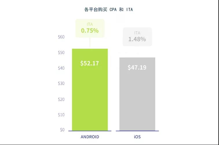 与 iOS 端 47.19 美元的转化成本相比,广告主在安卓端需花费 52.17 美元才能将其转化为付费用户。但 iOS 用户进行应用内购买的概率却是安卓用户的两倍。此外,iOS 用户在约会交友应用上的注册率比安卓用户高 79%,这些都表明 iOS 用户是线上约会交友的主力军,他们愿意为寻找真爱花费更多,所以移动营销人员可能需在 iOS 平台加大投入。