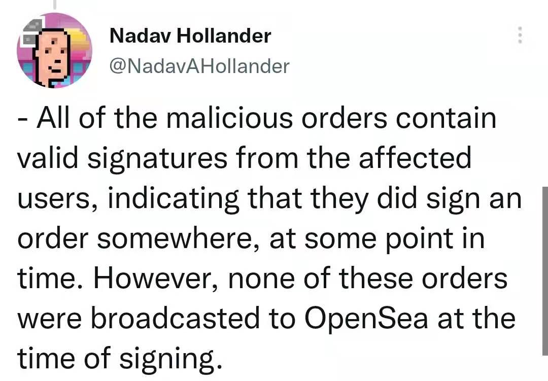 OpenSea CTO Nadav 发推表示受攻击者均具备有效签名