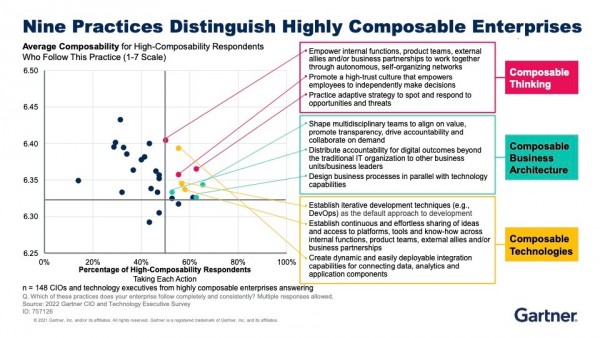 Gartner一直在倡导使用“可组合的业务” (Business Composability)来应对不确定性。业务可组合性被称为“业务元素”,业务元素比业务能力的涵盖要更广,除了可以把业务能力作为一个个模块,还可以把其他业务元素作为模块。