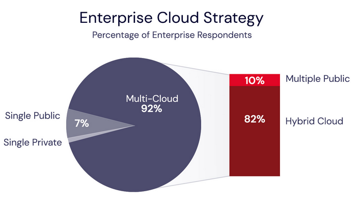 根据 Flexera 公司发布的 2021 年云状况报告,82% 的企业采用混合云战略。这表明很多企业都了解和利用混合云的好处。