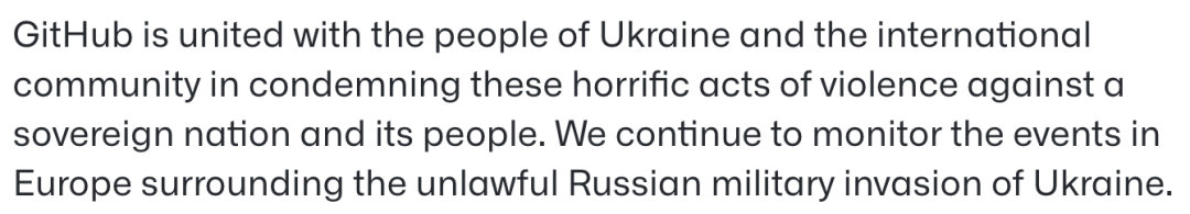 公告链接:https://github.blog/2022-03-02-our-response-to-the-war-in-ukraine/