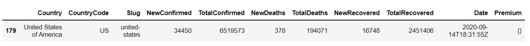 我们还可以将数据过滤Country,使用 loc,我们可以根据一些值过滤列,如下所示: