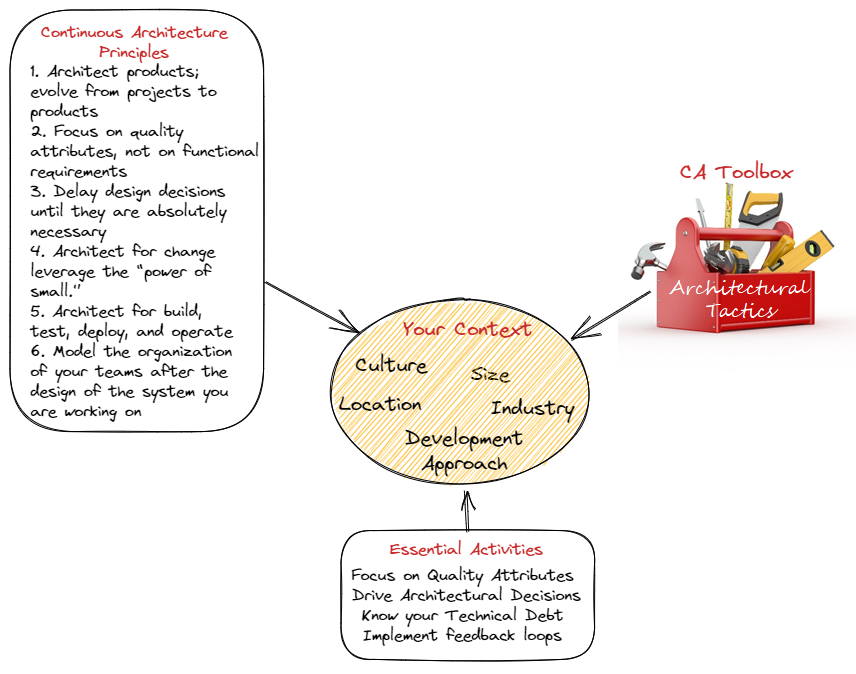 持续架构是一种方法,但不是非常正式的方法论,它可以很容易地与具体环境相适应。