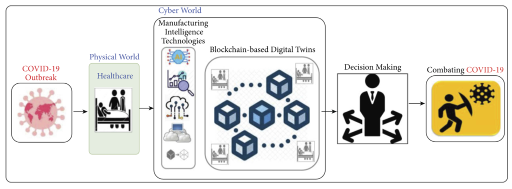 笔文章作者认为,结合数字孪生和区块链是构建安全、去中心化的医疗网络物理系统(MCPS)的“正确之道”,该系统集成了医疗设备网络。其想法是,参与者(比如患者、医生或医院)由部署在 MCPS 中的多个数字孪生来表示。数字孪生协作和交互,共享数据,并执行实时预测;所预测的风险让 MCPS 可以就封锁、限制和隔离给出建议。