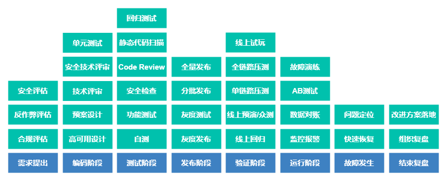 编码阶段,在设计技术方案时需要考虑止血/降级/回滚措施,并组织技术评审和安全技术评审,针对技术方案中的安全风险做一些评估。除此之外,最好做一些单元测试,可以大大提高代码的质量。