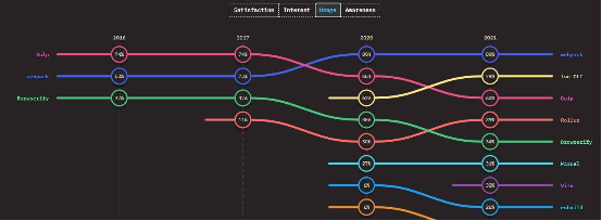 不久之前,《2021 年 JS 现状报告》刚刚发布。虽然得票率不高,但 JavaScript 在开发社区中仍广为人知、也值得关注。特别是那些完全没接触过 JavaScript 的朋友,请马上延伸这方面认知。另外,JavaScript 中的大部分工具 / 框架也能与 TypeScript 配合使用。