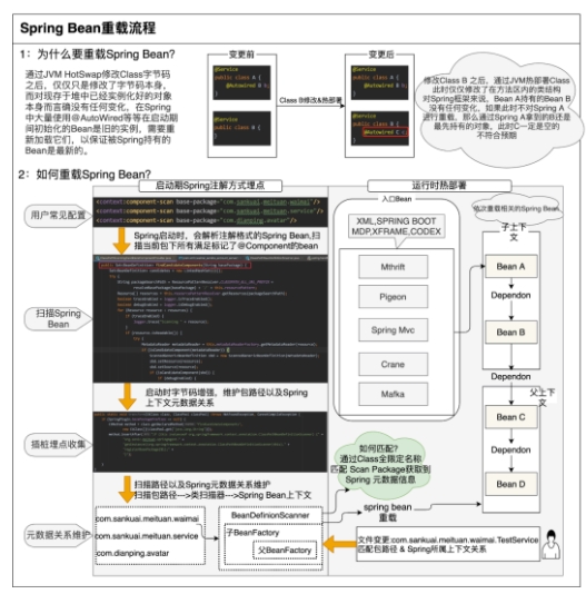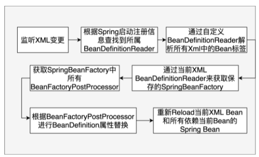 重新Reload之后,将Spring销毁后重启。需要注意的是:XML修改方式改动较大,可能涉及到全局的AOP的配置以及前置和后置处理器相关的内容,影响范围为全局,所以目前只放开普通的XML Bean标签的新增/修改,其他能力酌情逐步放开。